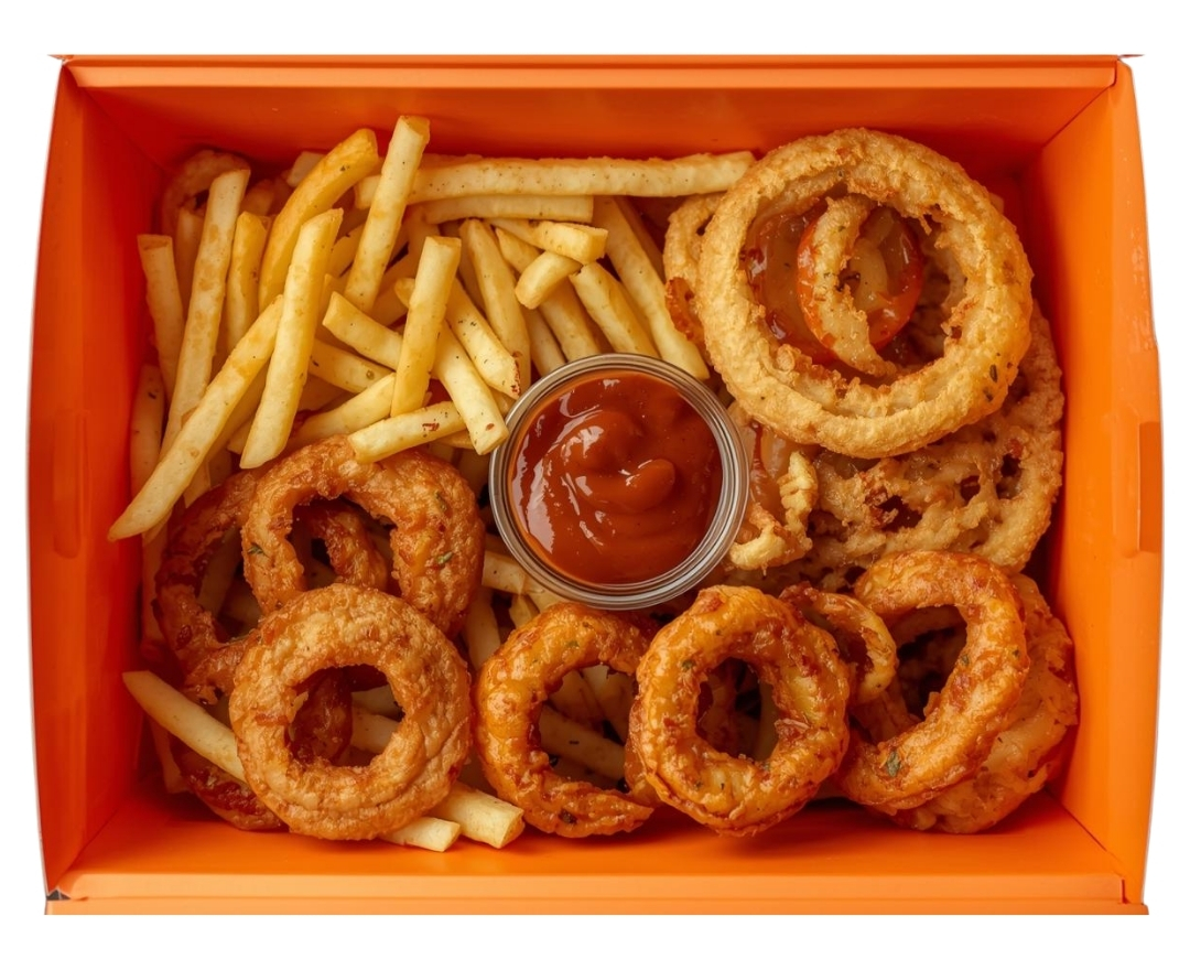 Soğan halkası, mozzarella stick,Patates,jalapeño sos.